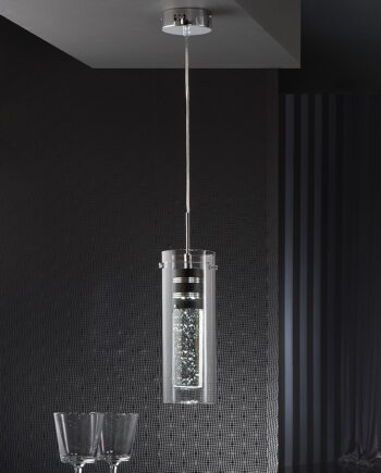Lámpara colgante individual COSMO Cromo de 5W Led cilindro de burbujas Schuller