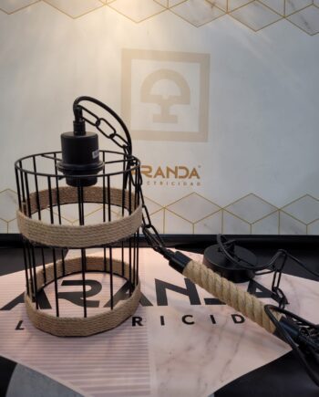 Colgante forja con cuerda HALIA jaula grande para bombilla E27