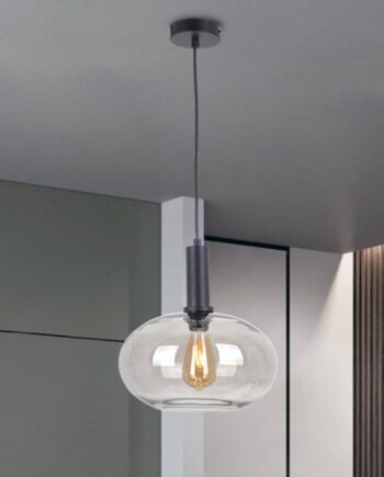 Colgante negro y cristal fumé para bombilla E27 JM Lamps