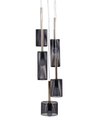 Lámpara 5 colgantes en negro y oro, 602059 Ixia. 200cm altura. STOCK EN TIENDA.