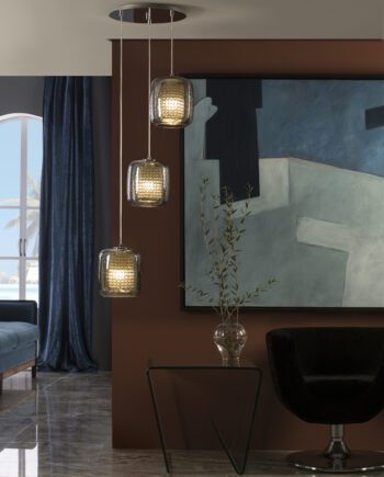 AQUA: Colgante de techo cromo y cristal fúme Schuller 654401. STOCK DISPONIBLE EN TIENDA