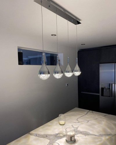 Lámpara en línea ELIE cromo de 4 colgantes con cristal Schuller