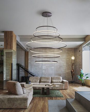 Lámpara ODESSA bronce oscuro de 7 aros redondos con 220w Led dimable con mando a distancia Schuller