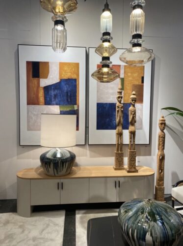Lámpara de techo FORMAS colgante cristal y mármol travertino BOLA Vp Interiorismo