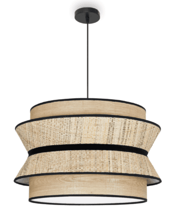 DRAC: Lámpara de Pantalla tejido CAÑA, vivo negro, 60cm, 466 Marinisa. Para 3 bombillas E27