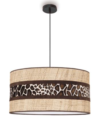 LENA: Lámpara de Pantalla 50cm, cable cuero, doble tela exterior beige interior estampada para E27, 444 Marinisa.