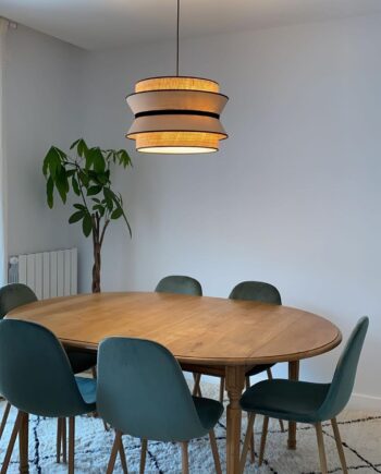 DIBU: Lámpara de Pantalla con tela CAÑA y Neptuno beige 493 Marinisa, 50cm para 3 bombillas E27.