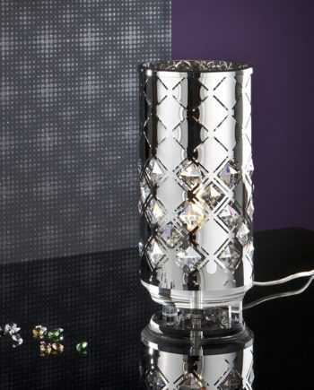 • ALEXIA: Lámpara sobremesa cilindro en cromo y cristal  Schuller 698233 1xE14. STOCK DISPONIBLE EN TIENDA