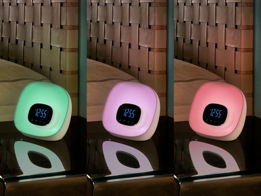 • SUNRISE: Lámpara de sobremesa Led con Despertador radio y RGB, 415801 Schuller. STOCK DISPONIBLE EN TIENDA