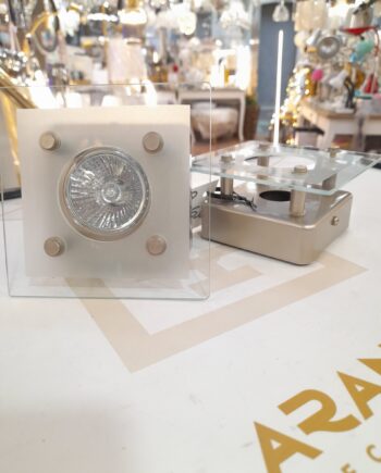 Mini plafón superficie metal y cristal opal Gu10, Santos. STOCK DISPONIBLE EN TIENDA