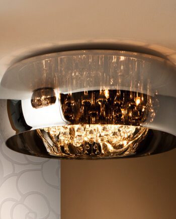 Plafón exclusivo BRUMA cromo y lágrima de cristales con Led