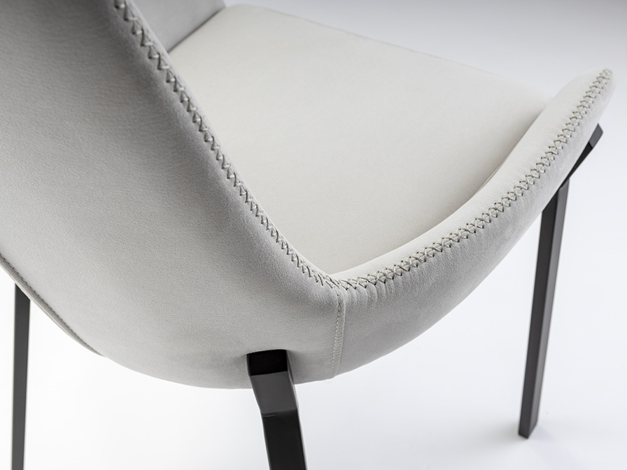 • Silla DIANE tapizada blanca con pespuntes gris y patas negro mate Schuller