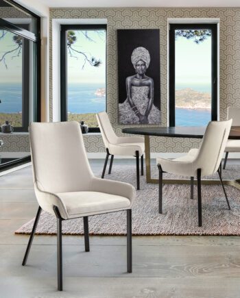 Silla DIANE tapizada blanca con pespuntes gris y patas negro mate Schuller