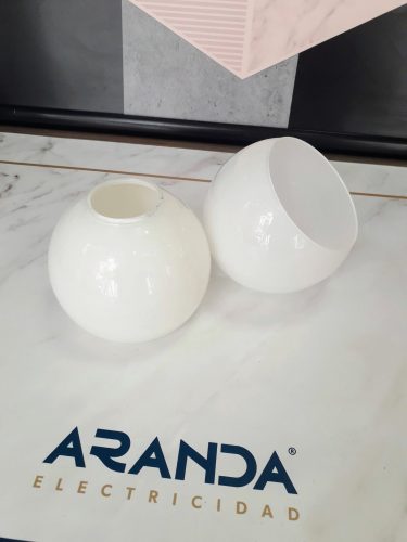 Tulipa de cristal: Bola opal abierta 3/4 blanco brillo. 20cm diámetro. Ultima unidad!
