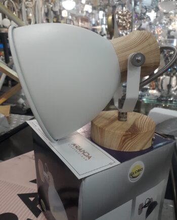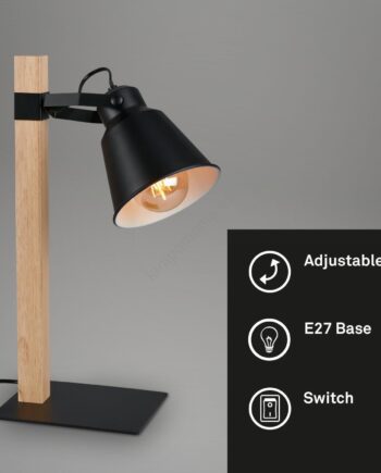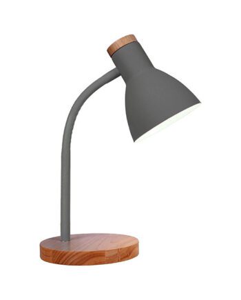 Flexo ARGOS de sobremesa gris con detalle de madera para bombilla E27