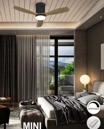 SIROCO MINI – Ventilador negro y aspas madera color nogal Dimable Schuller