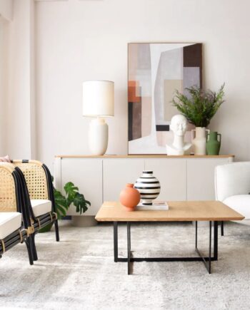 Mesa de centro madera natural con tapa porcelánica VP Interiorismo