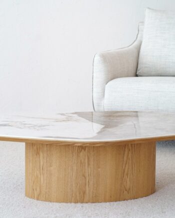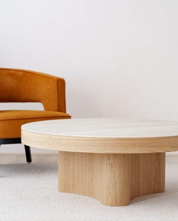Mesa de centro CURVA madera fresno natural y tapa cerámica beige VP Interiorismo