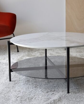 Mesa auxiliar redonda piedra sinterizada blanca y patas negras N 01 BAJA VP Interiorismo