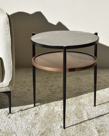 Mesa de centro IZA giratoria y con cajón negra con tapa porcelánica Schuller