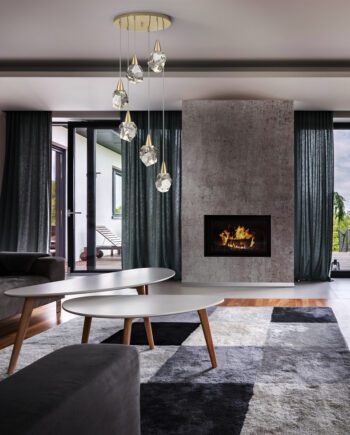 Lámpara AQUARIA base redonda con 6 luces oro y cristal burbujas de 24W Led Schuller
