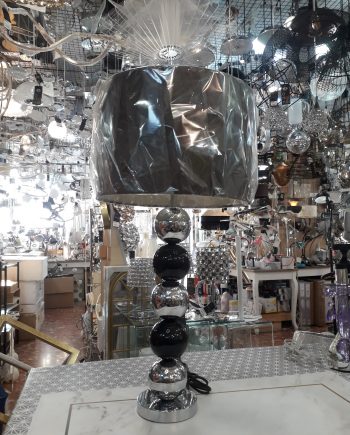 SEL 1: Lámpara de sobremesa esferas cromo y negro, 63 cm altura con Pantalla 32cm cilindro negra. STOCK EN TIENDA