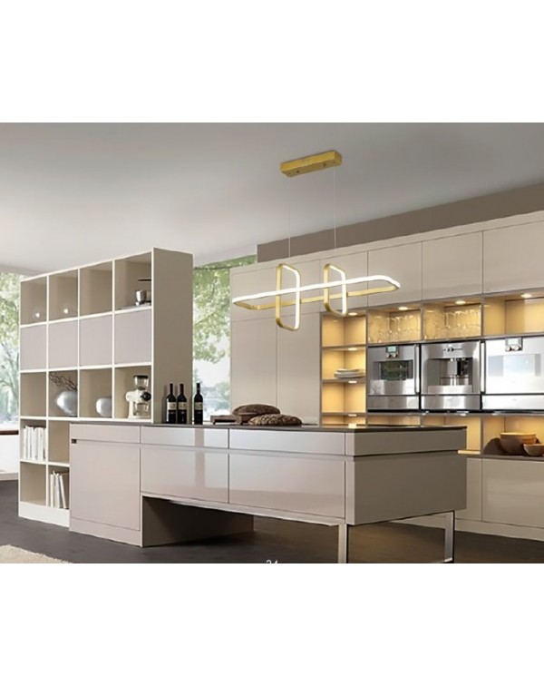 Lámpara en línea oro con 76W Led dimable con mando a distancia, 80490/2+1 GD Narvi. 80 x 20 cm hasta 120cm altura. STOCK EN TIENDA