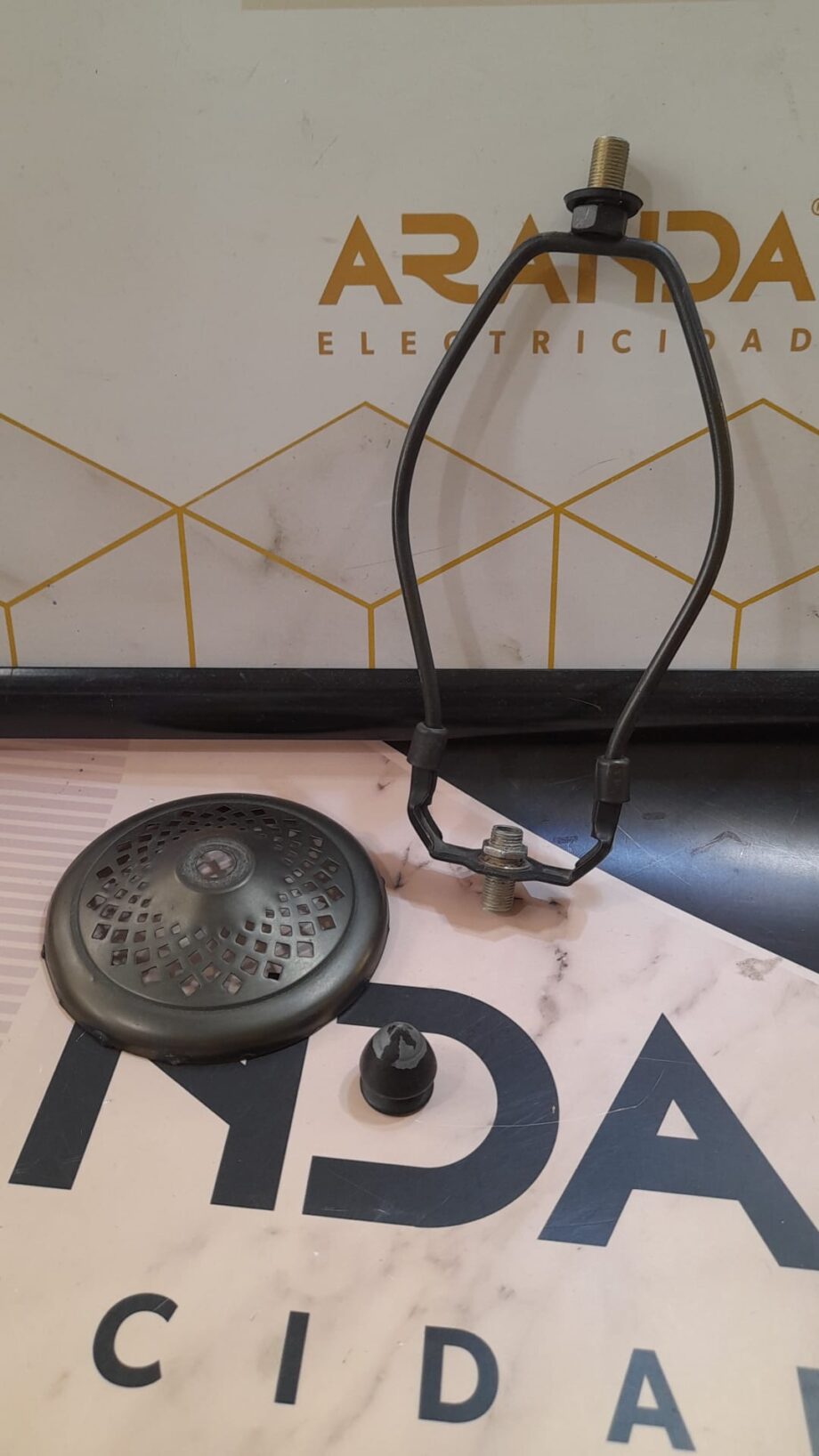 Incluye embellecedor y terminal desgastado (última unidad y rebajado por considerarlo en TARA) para sujetar tulipas de cristal o tiffany.