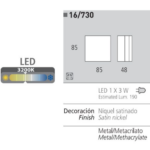 Aplique pared metálico níquel satinado con Led integrado, 3w con 190lm en 3200k
