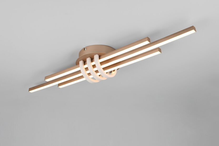 La luminaria CINTO no es sólo una fuente de luz, sino también un enriquecimiento con su fuerte carácter en color champán dorado y gris mate, que da a su interior un toque especial.