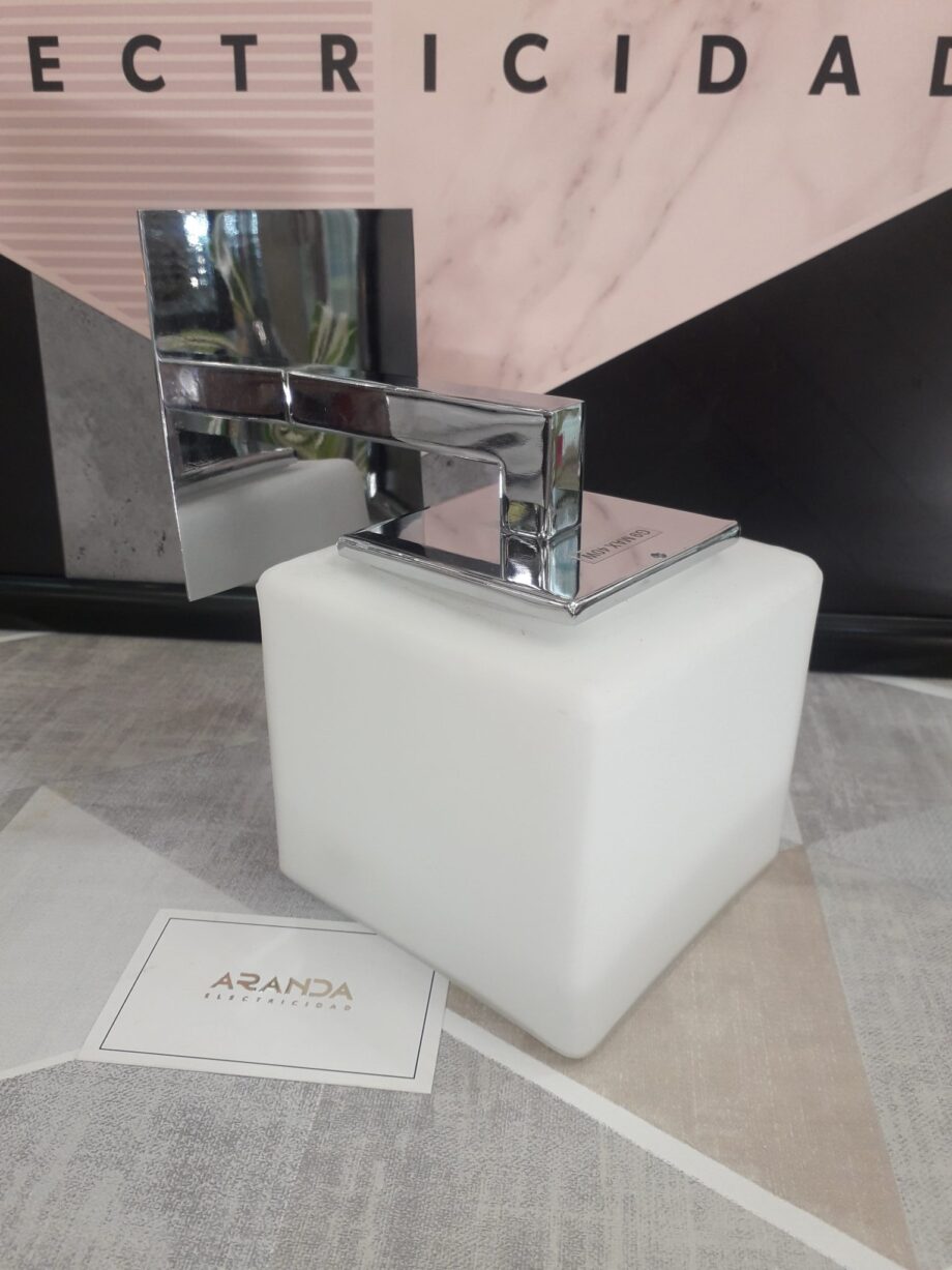 Aplique de pared cromo y tulipa cuadrada de cristal opal blanco con bombilla Led g9.