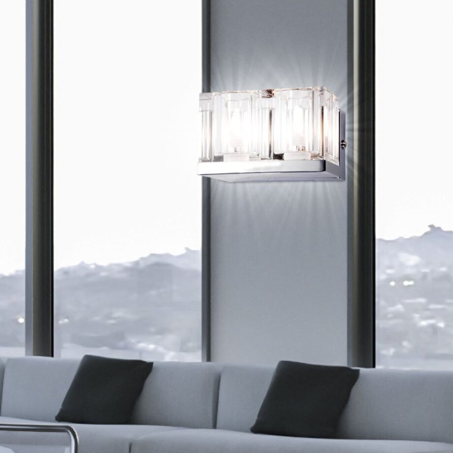 Aplique de pared CUBS mini cromo y cristal transparente para dos bombillas G9