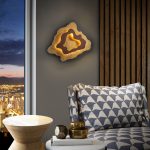 Aplique color óxido y Pan de Oro y  acero COR-TEN marrón óxido.