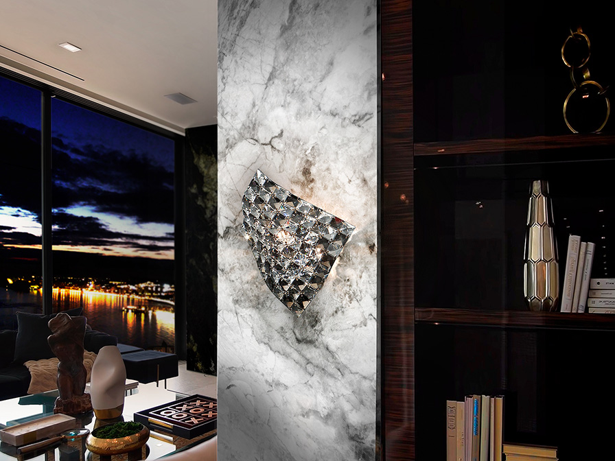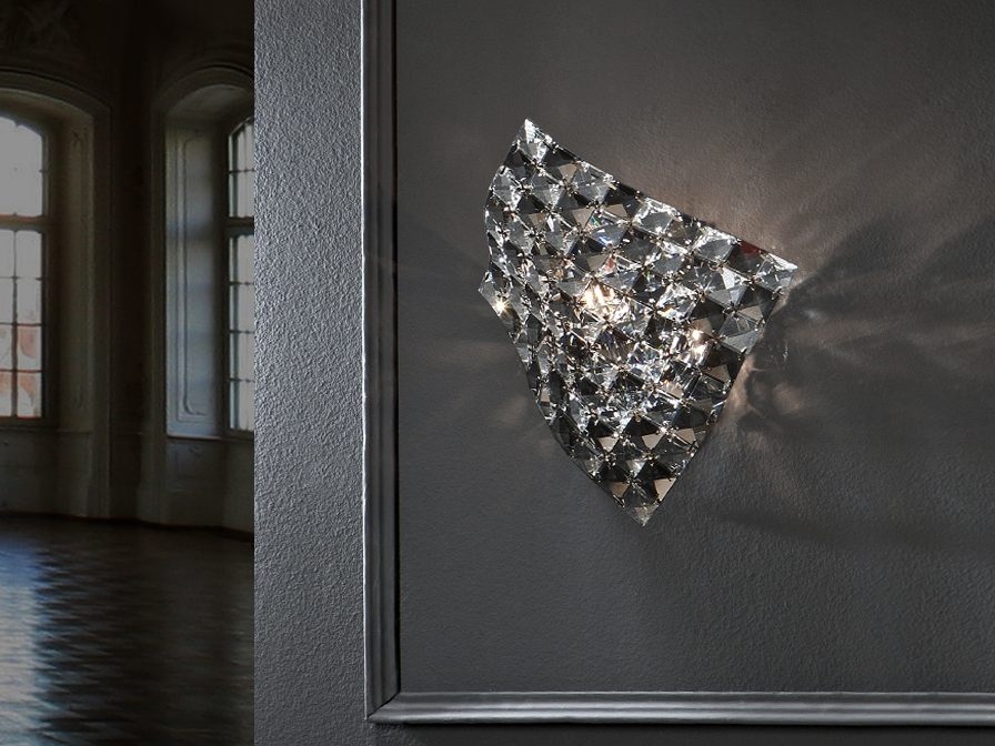Aplique de pared SATEN cromo y pañuelo de cristales transparentes y smoke schuller.