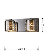 DENISE: Aplique cromo, fumé y cristales con 2 g9 Led, Schuller 494856. STOCK DISPONIBLE EN TIENDA