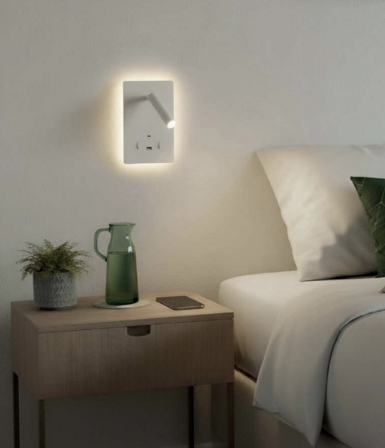 Aplique MANAT blanco con Lector y luz indirecta 5w + 3w con doble USB + C ACB Iluminación