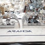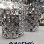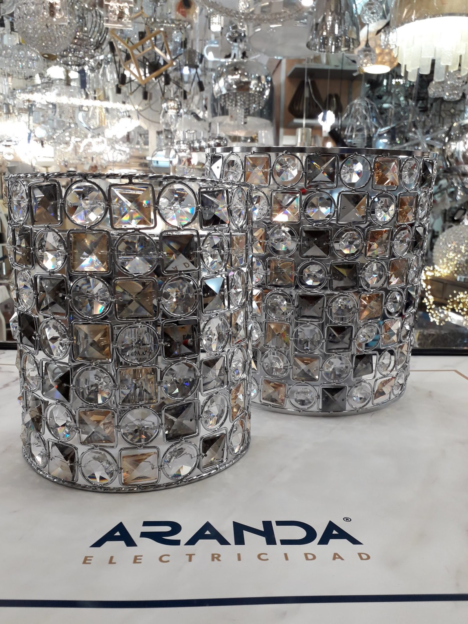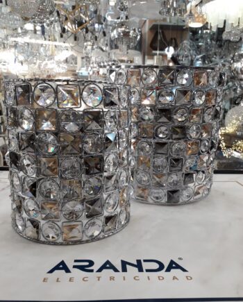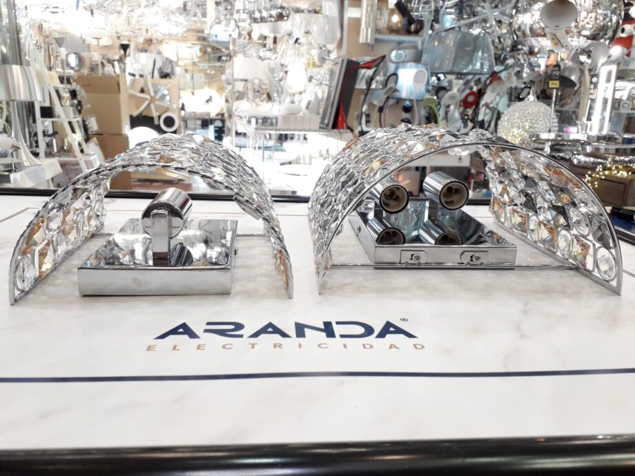 Aplique pared modo teja en cromo con cristales transparentes, fumé y caramelo.