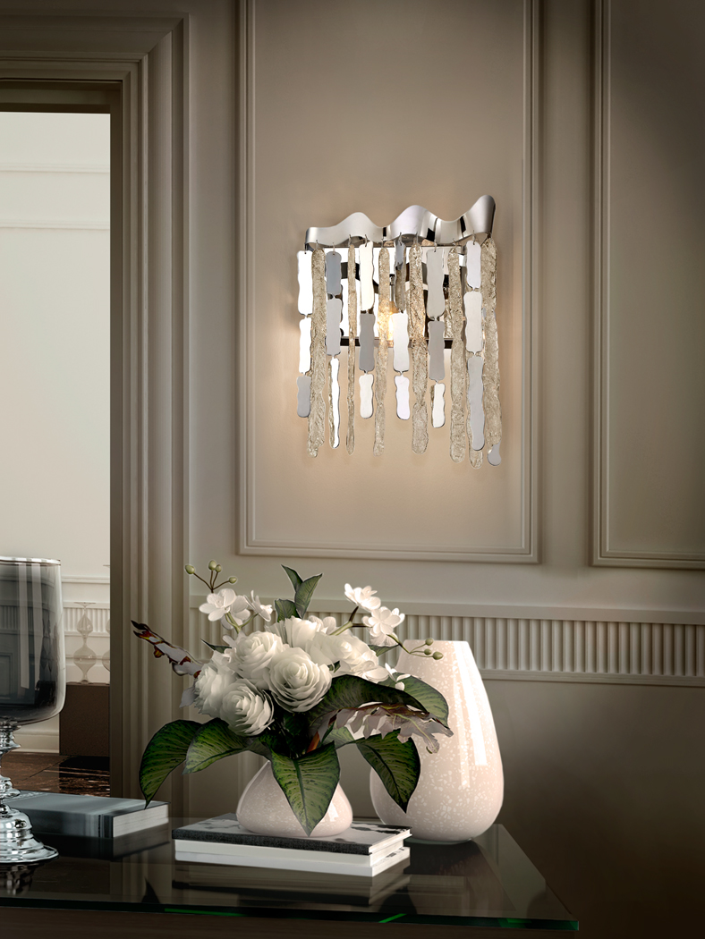 CHANTAL: Aplique de cristal murano y cromo Schuller 932512. STOCK DISPONIBLE EN TIENDA