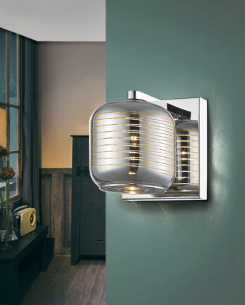 Lámpara de pared de 2 luces realizada en metal acabado cromo y cristal.