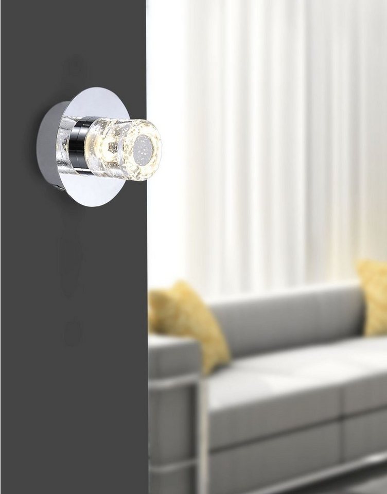 1x LED con 6 vatios – acero – cromo – vidrio acrílico transparente con burbujas de aire – IP44 – 3000K