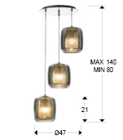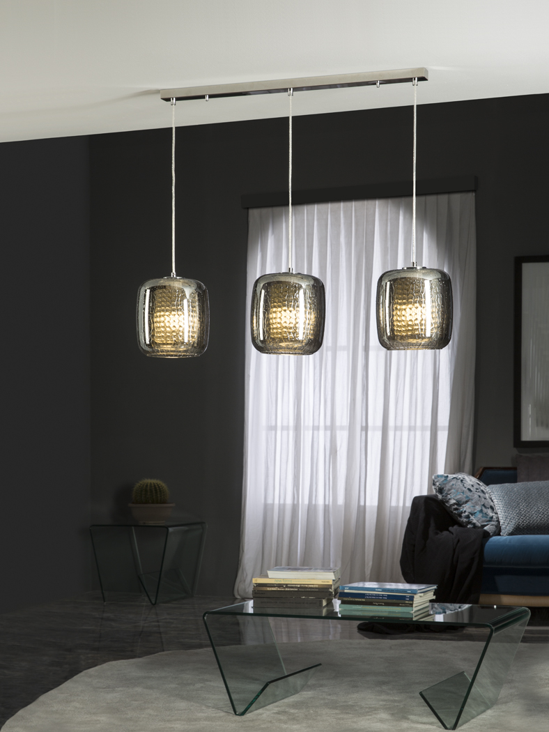 AQUA: Lámpara cristal fumé y cristal interior con Ø 47cm · Cromo · 3Luces E27 Schuller 654639. STOCK DISPONIBLE EN TIENDA