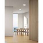 Acabado en blanco y perfil blanco, perfecto para ambientes scandy y modernos, cuyo tamaño es ideal para tapar desperfectos del techo por su gran diámetro.