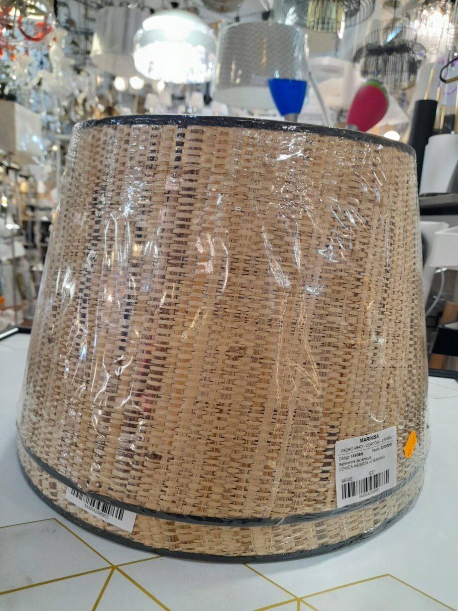 BANANA: Pantalla tela trama oscura, vivo negro, Marinisa. 40cm diámetro en E27, forma cónica abierta. DISPONIBLES EN TIENDA