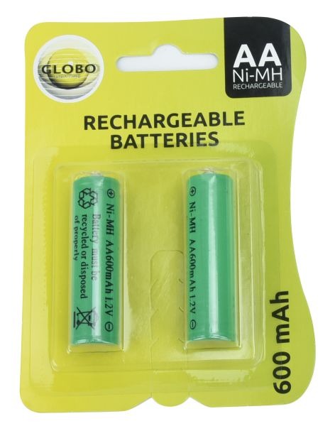 Blister de 2 Baterías – Pilas recargables Níquel AA 1,2V 600 mAh Globo Lighting