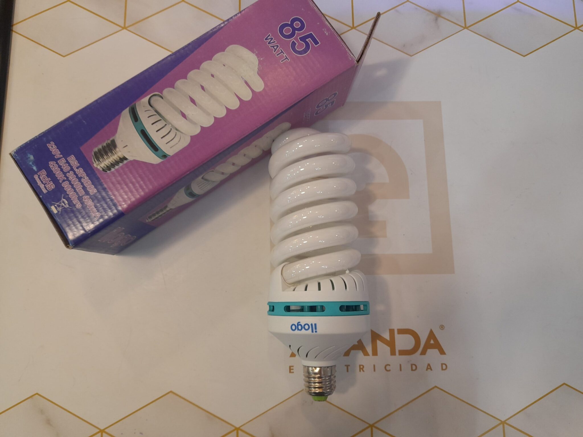 Bombilla Bajo Consumo 85w Espiral, Luz neutra 4200k en E27, Ilogo. STOCK DISPONIBLE EN TIENDA