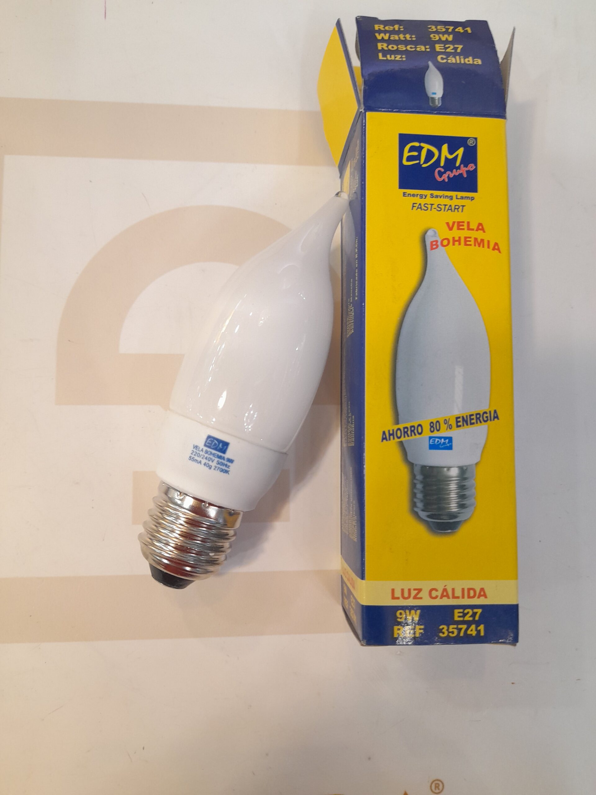 Bombilla bajo consumo E27 vela bohemia 9w luz cálida, 35741 EDM. STOCK DISPONIBLE EN TIENDA