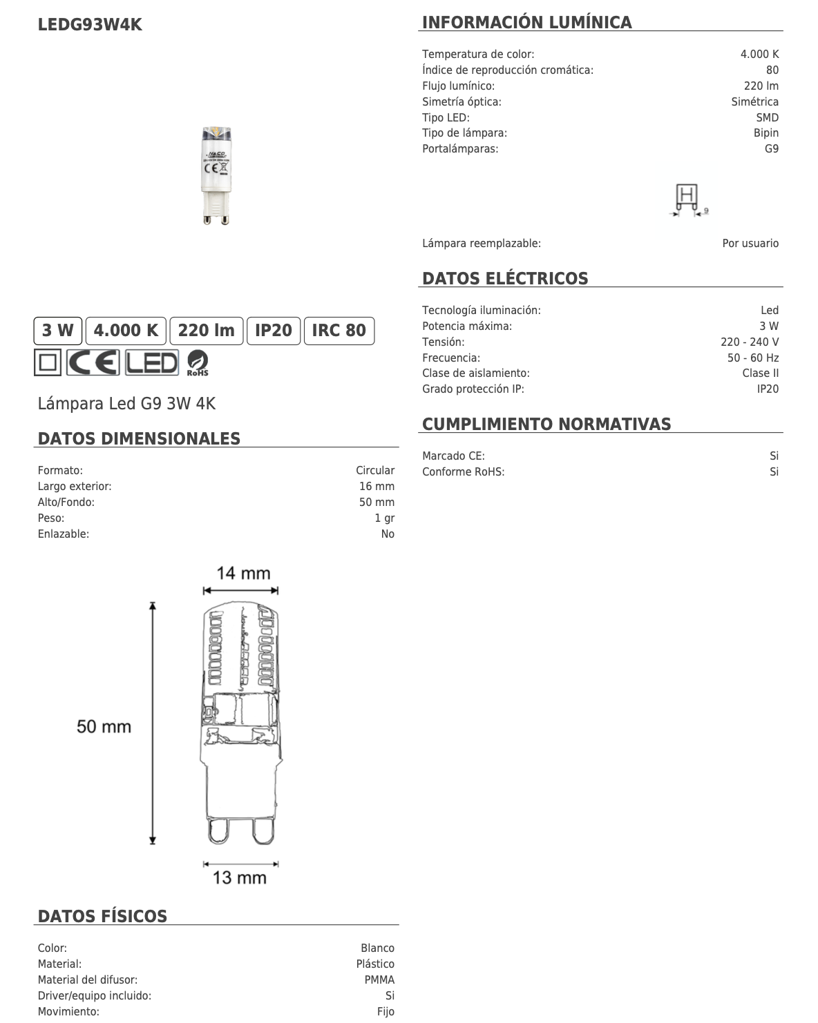 Bombilla G9 luz neutra 4k, 3w, Lente especial, Acontract-Luz. STOCK DISPONIBLE EN TIENDA