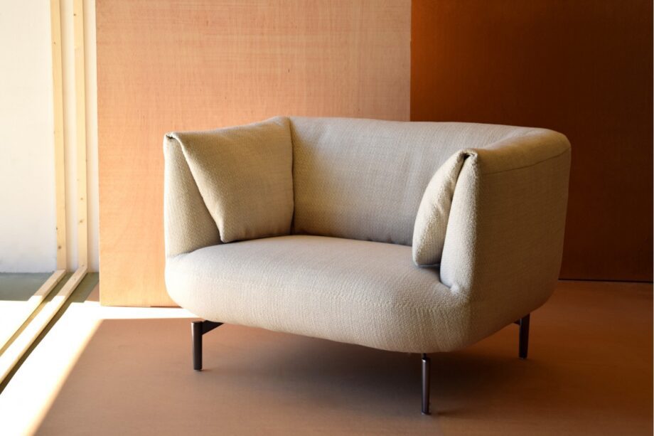DESTACA POR SU VOLUMEN LOS DETALLES EN LA DOBLEZ DE LOS REPOSABRAZOS Y LA CURVA SUTIL EN EL BORDE DEL ASIENTO REFORZANDO MÁS LA SENSACIÓN DE COMODIDAD QUE TRANSMITE ESTE DISEÑO.