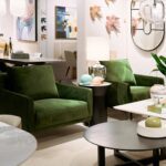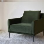Butaca tapizada en terciopelo verde con patas negras VP Interiorismo