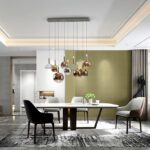 Lámpara en línea CHARLIZE bronce oscuro de 9 colgantes colores con 54W Led con mando Schuller